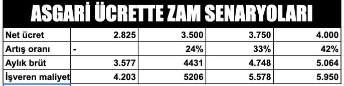 2022 ASGARİ ÜCRET ZAM SENARYOLARI