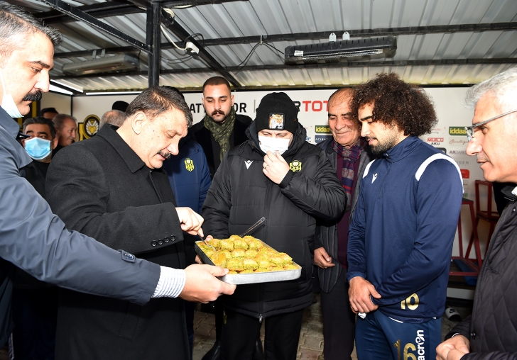 Başkan Gürkan açıklamaların ardından teknik heyet ve futbolculara tatlı