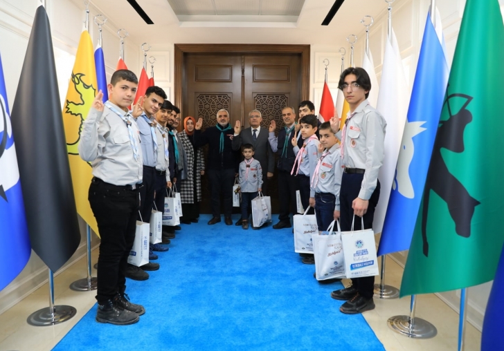 Güder, “Bugün izcilik kulübü hocalarımızı ve öğrencilerimizi belediyemizde ağırlıyoruz. Hoş gelmişler, sefalar