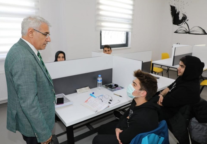 kütüphanedeki öğrenciler ile tek tek yakından ilgilenerek sohbet eden Başkan Güder, Kamu Personel Seçme
