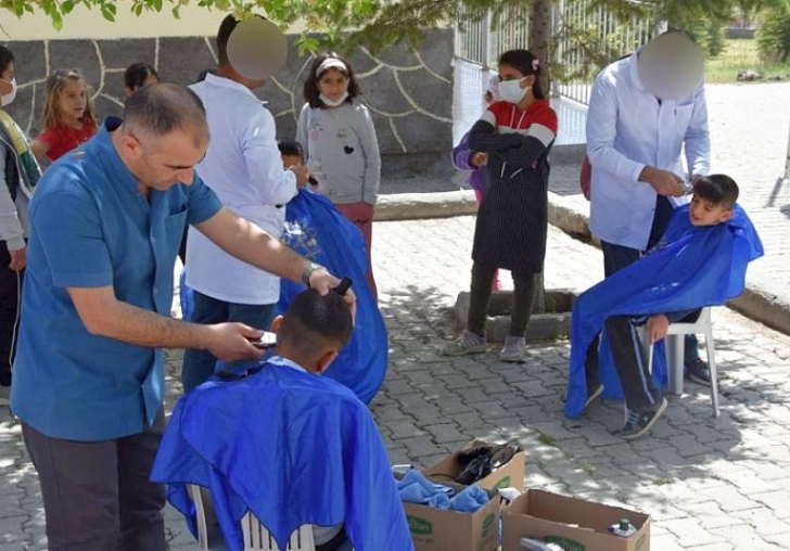 Akçadağ İlçe Milli Eğitim ve Halk Eğitim Merkezi iş birliğinde açılan kursta eğitim alan hükümlüler, eğitmen Ebubekir Arabacı'nın koordinesinde ilçeye bağlı Esenbey, Güzyurdu, Kozluca, Kürecik, Levent ve Yağmurlu mahallelerindeki öğrencilerin saç bakımlarını yaptı.