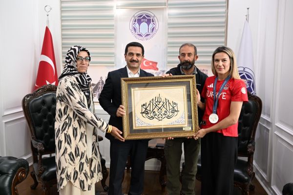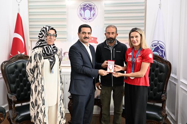 madalya kazanarak tarihi bir başarıya imza atan Hatice Akbaş, başarısını paylaşmak üzere Battalgazi