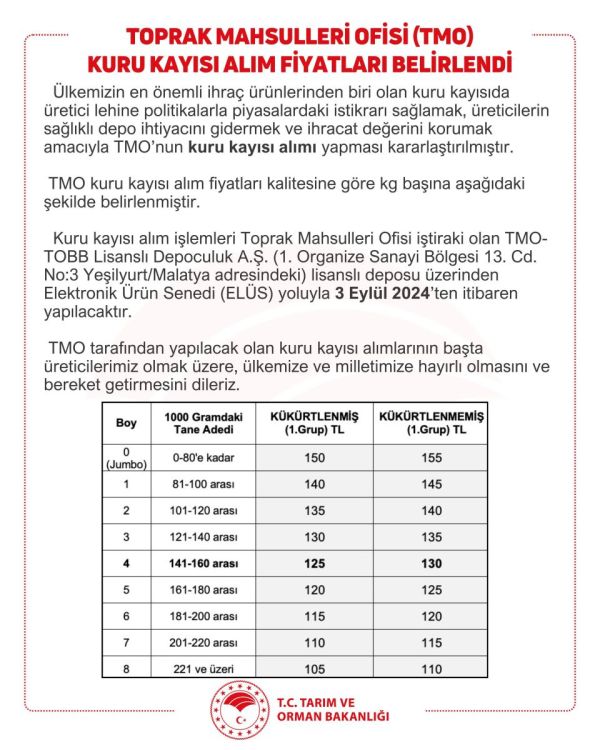 korunması için Toprak Mahsulleri Ofisi’nin (TMO) taban fiyat açıklaması