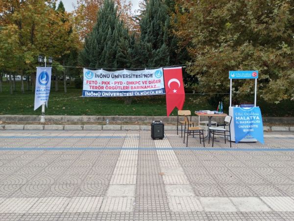 Malatya Ülkü Ocakları, İnönü Üniversitesi'nde yeni eğitim-öğretim yılına başlayan öğrencilere yönelik anlamlı bir etkinliğe imza attı. Üniversite yerleşkesinde açılan stantta, yeni gelen öğrencilere ocak faaliyetleri hakkında bilgi verilirken, "FETÖ-PKK-PYD-DHKPC ve diğer terör örgütleri barınamaz" yazılı bir pankartla da milli duruş vurgulandı.