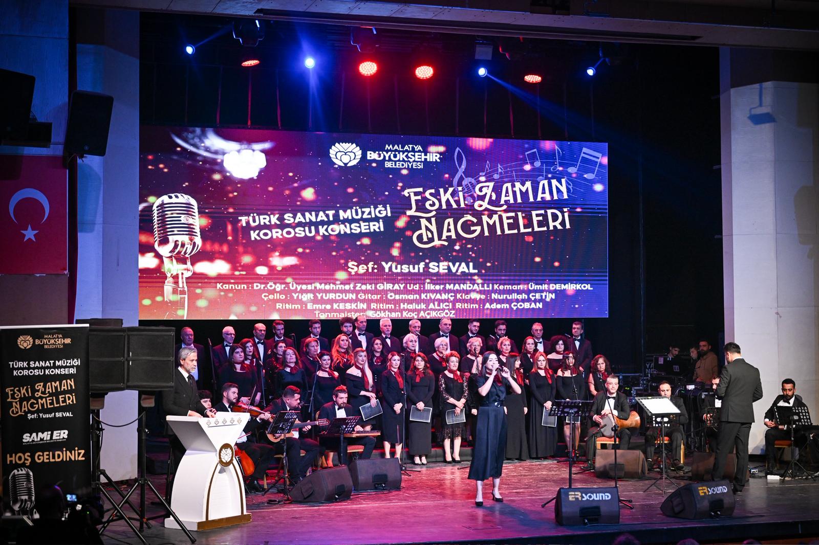 Malatya Büyükşehir Belediyesi Sanat Merkezi tarafından düzenlenen "Eski Zaman Nağmeleri" Türk Sanat Müziği konseri, Kongre ve Kültür Merkezi’nde yoğun bir katılımla gerçekleştirildi. Geceye katılan Büyükşehir Belediye Başkanı Sami Er, koro şefi Yusuf Seval ve ekibinin performansını takdirle karşılarken, şehrin geleceğine dair kültürel vizyonunu paylaştı.